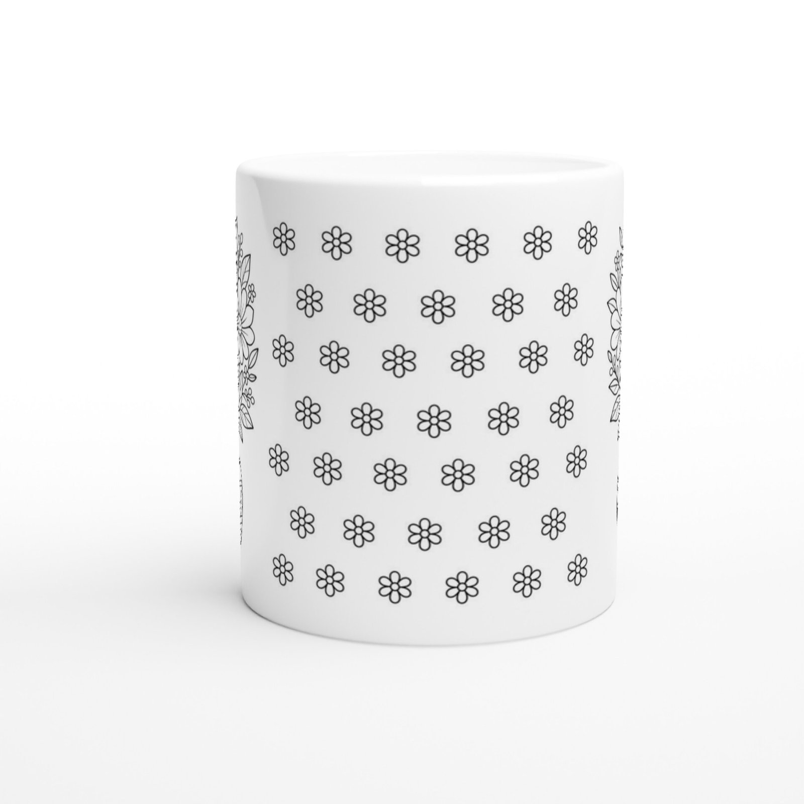 Eine wunderschöne Tasse zum Ausmalen für Kinder und kreative Erwachsene, die Blumen und Naturmotive lieben.