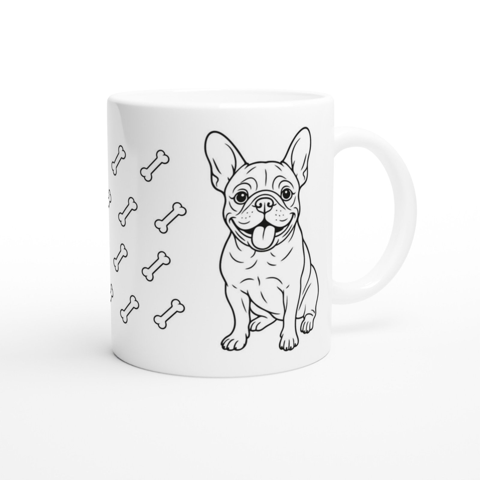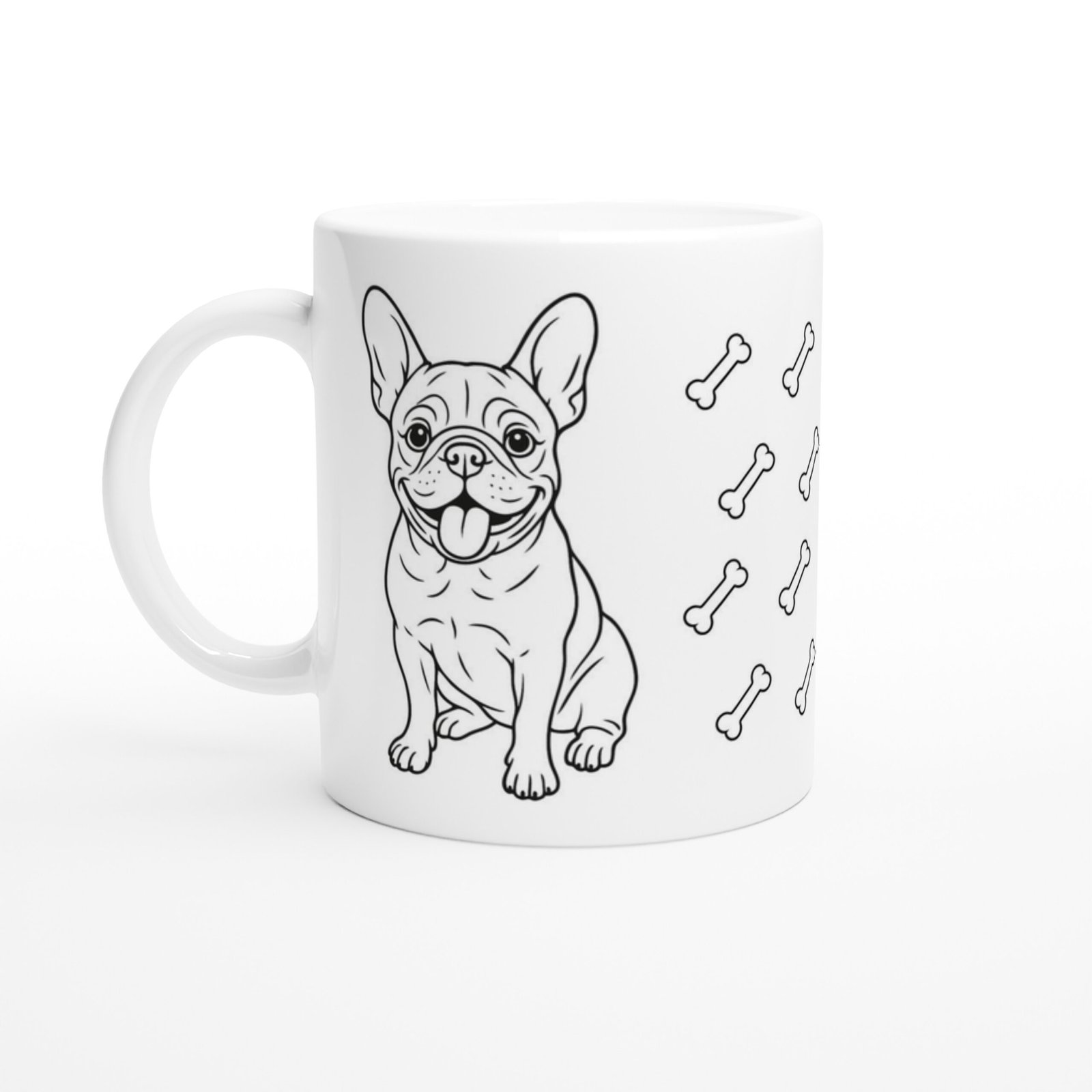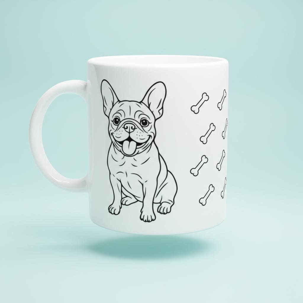 🐶 Ausmalbare Tasse mit Französischer Bulldogge & Knochen – Kreative DIY Kindertasse