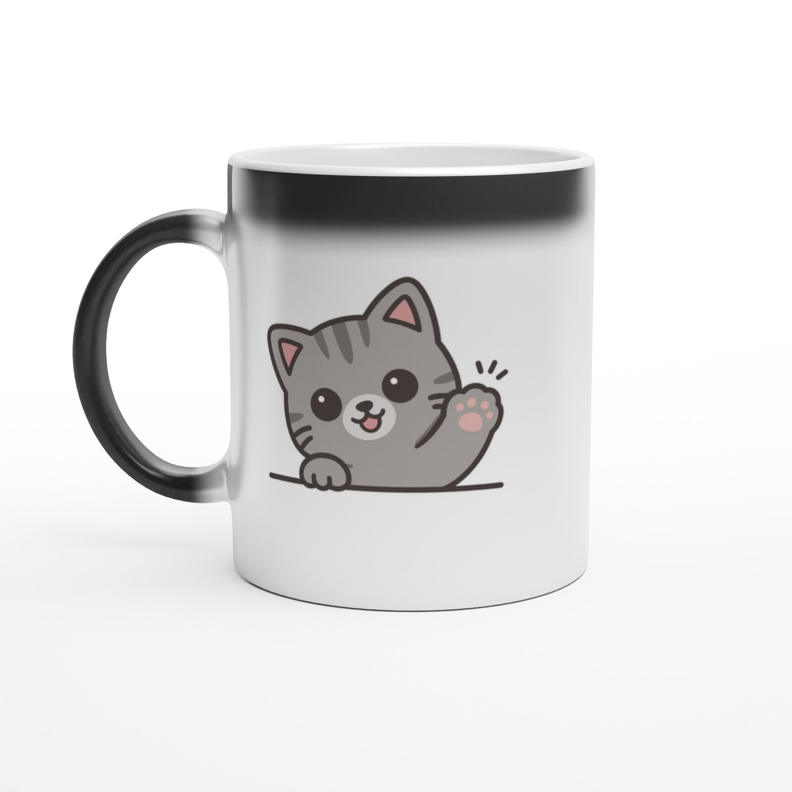 Diese bezaubernde Farbtasse ist nicht nur ein praktischer Begleiter für dein Lieblingsgetränk, sondern auch ein echter Hingucker! Im kalten Zustand wirkt die Tasse schlicht schwarz – doch sobald sie mit einem heißen Getränk gefüllt wird, offenbart sich ein niedliches Katzenmotiv, das jedem ein Lächeln ins Gesicht zaubert.