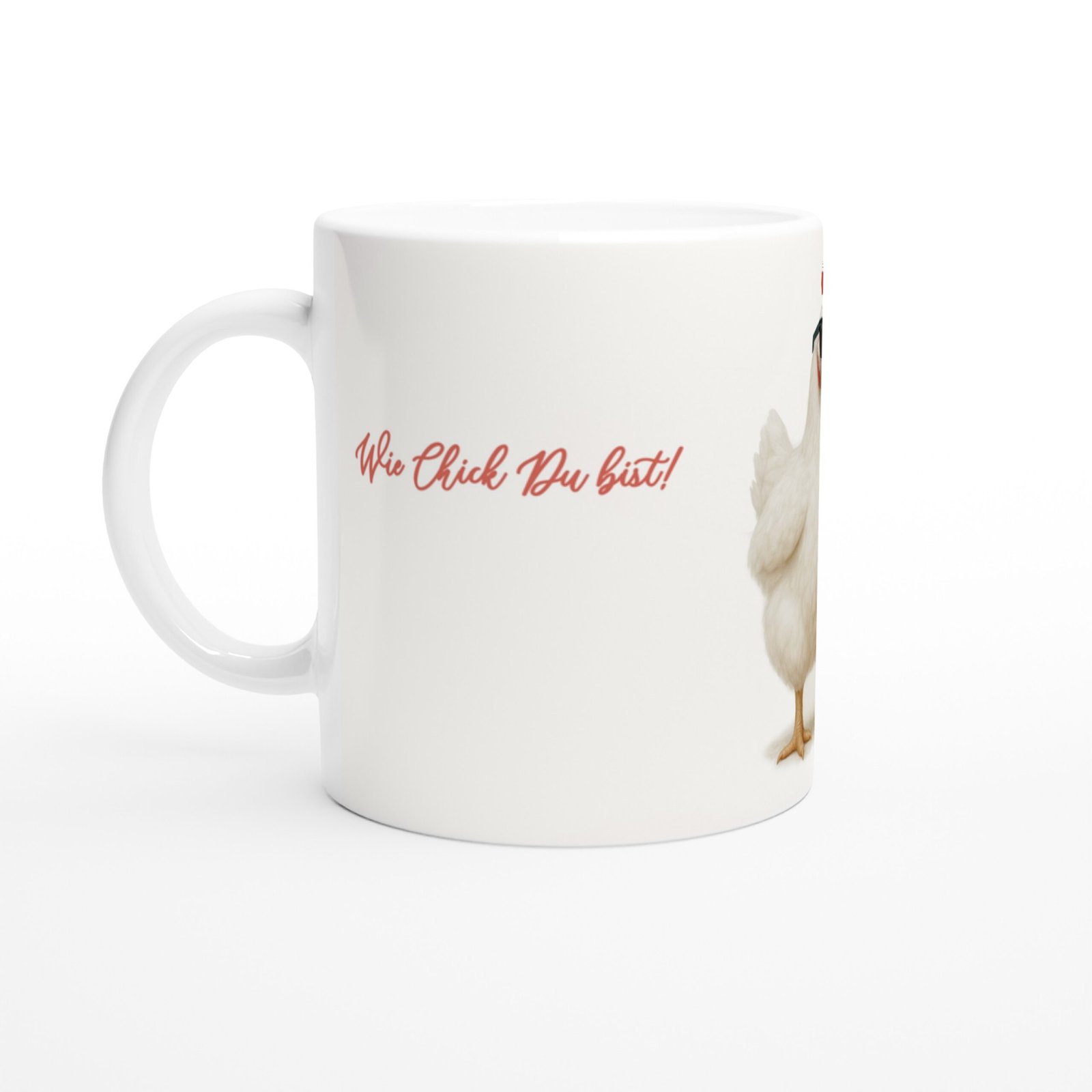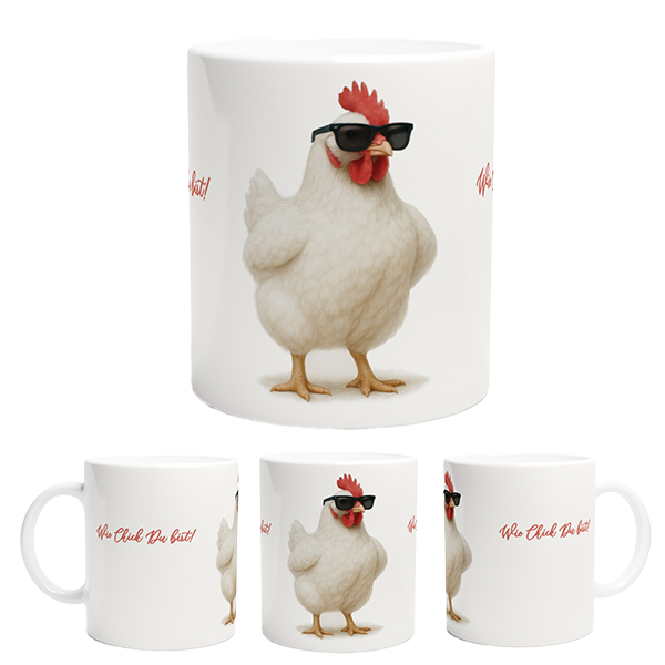 Diese Tasse bringt Spaß in jeden Morgen! Das coole Huhn mit Sonnenbrille und der freche Spruch „Wie Chick Du bist“sorgen für gute Laune bei jedem Schluck. Ein perfektes Geschenk für alle, die originelles Design und Wortspiele lieben – ob im Büro, zu Hause oder als kleine Aufmerksamkeit.